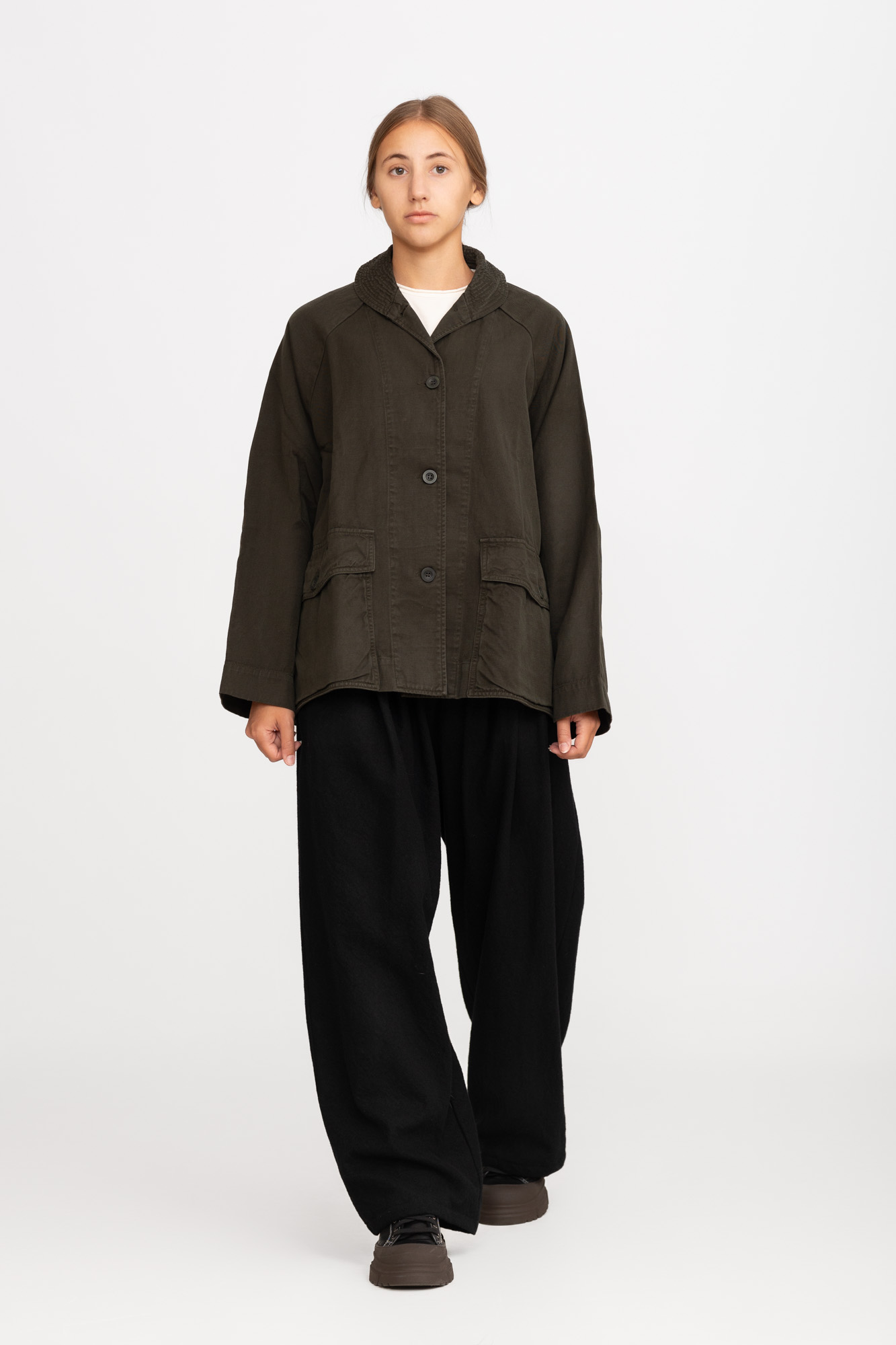 Jacket oversized casey&casey with 2flap pockets and stiched collar, 67% cotton, 33% linen.