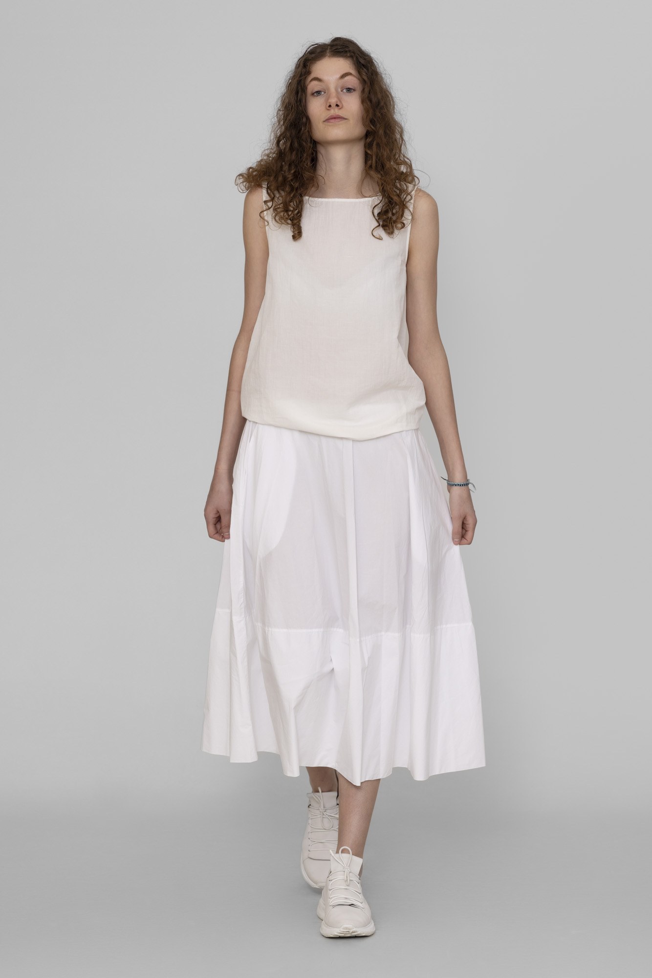 Top Apuntob 56% linen, 44% cotton, little bit fitted low.