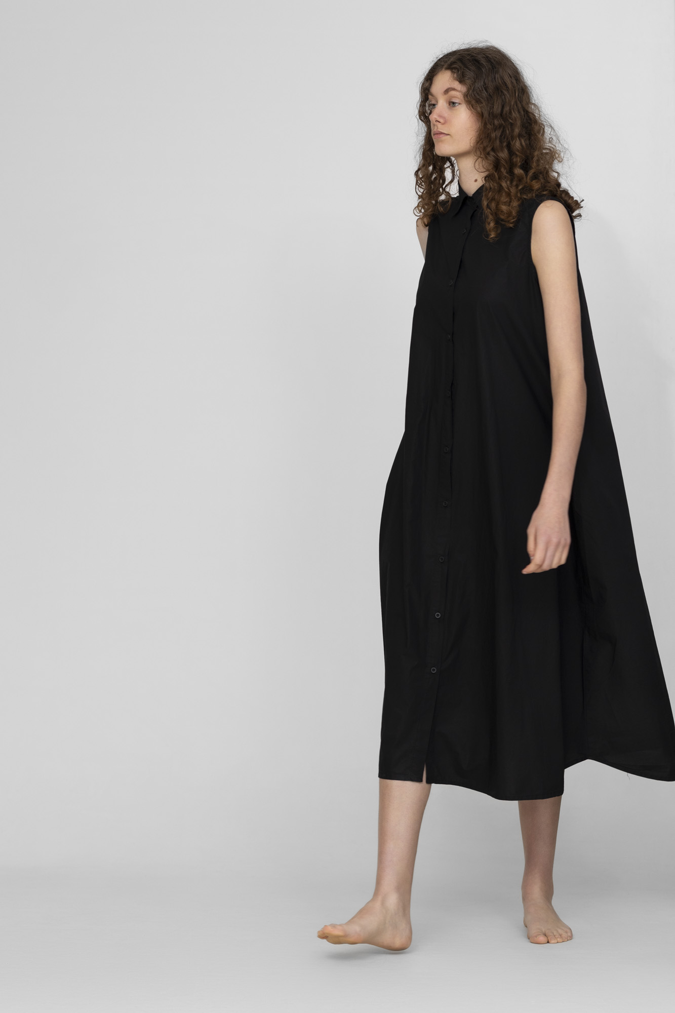 Robe Labo art 100% coton léger , modèle sans manches, 2 poches côtés.