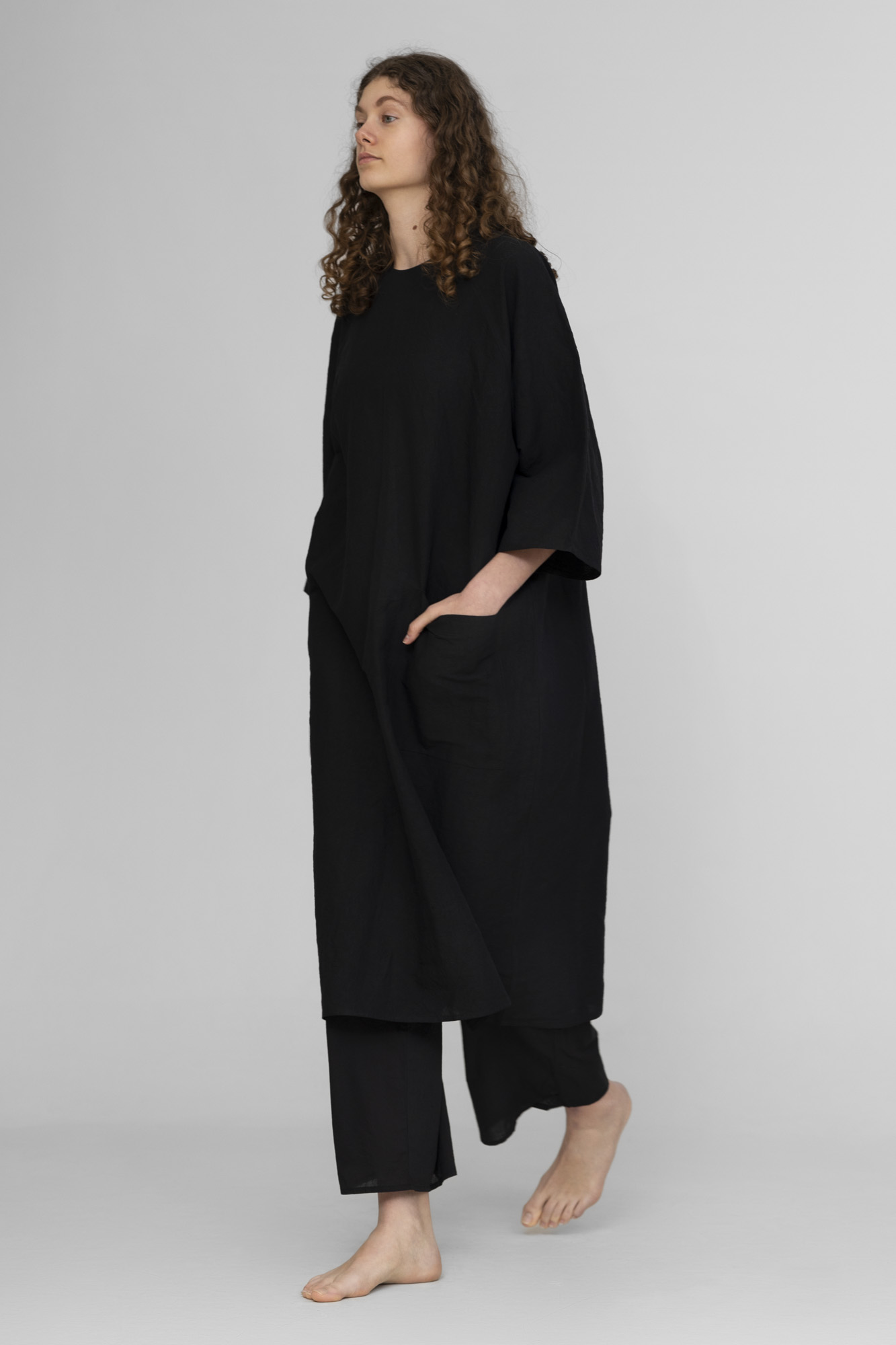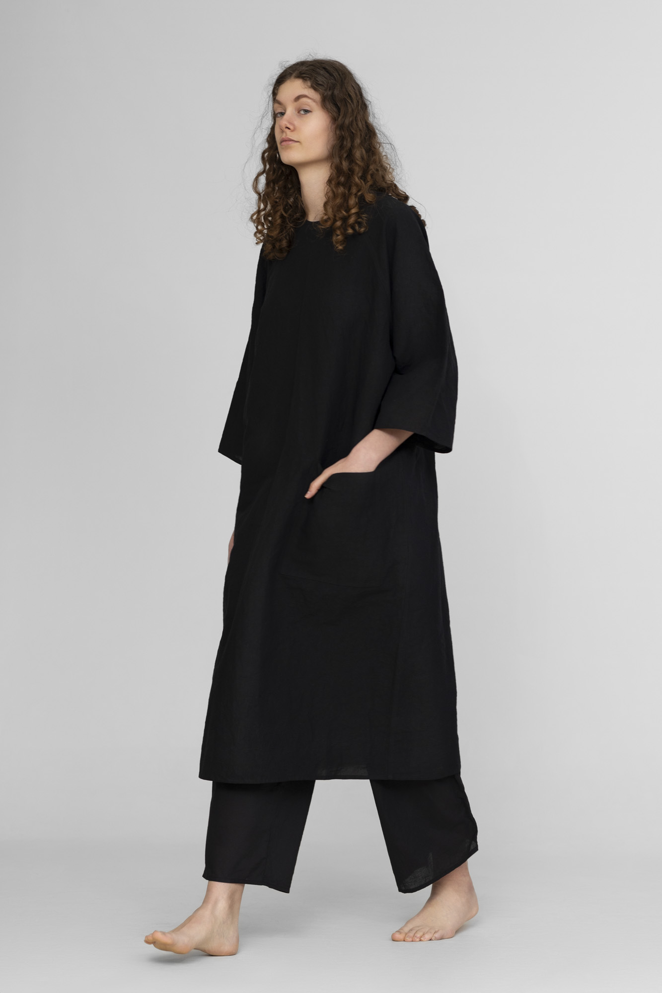 Robe loose Sofie D’hoore, 72% lin, 28% coton, manche  raglan, poches sur les côtés.