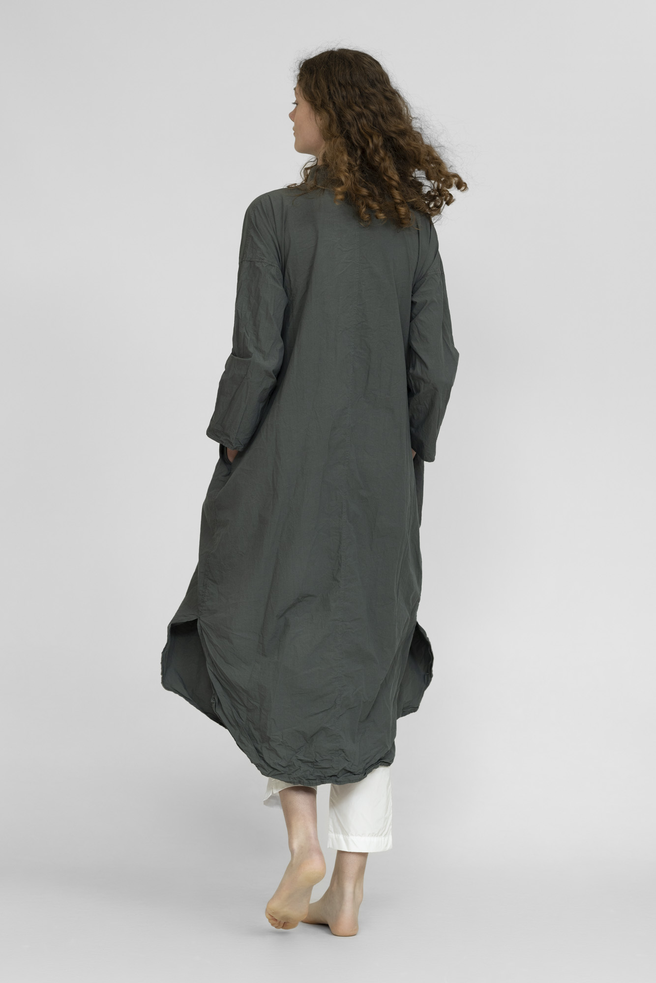 Longue robe chemise Album di famiglia, 100% coton froissé, 2 poches côtés.
