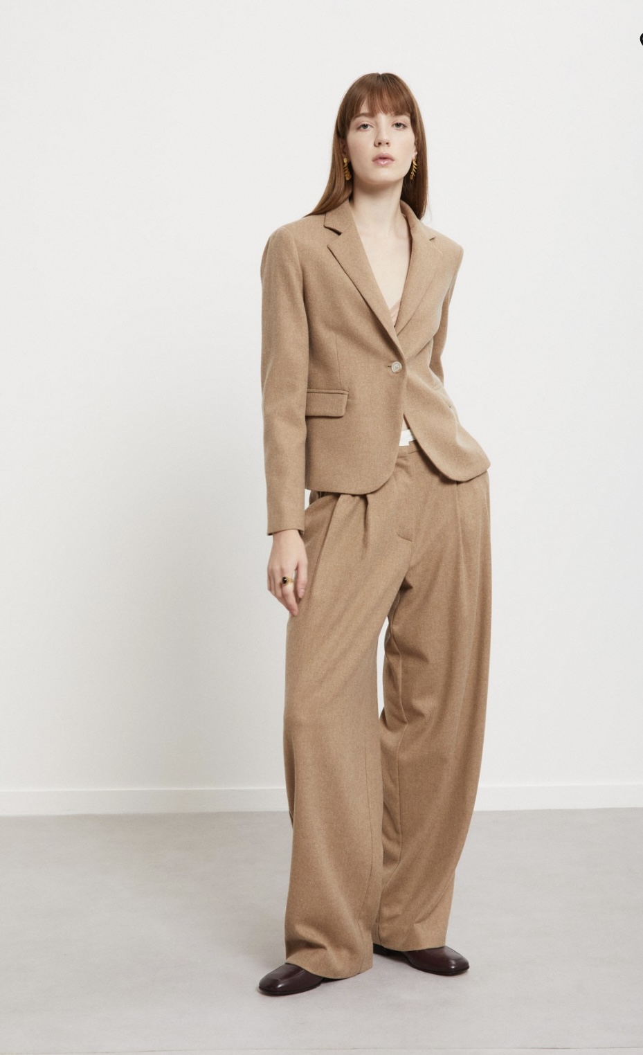 Pantalon Ottod’Ame, souple,  33% laine vierge, 33% viscose, 33%polyamide, 1% élasthanne. Pinces devant, 2 poches côtés.