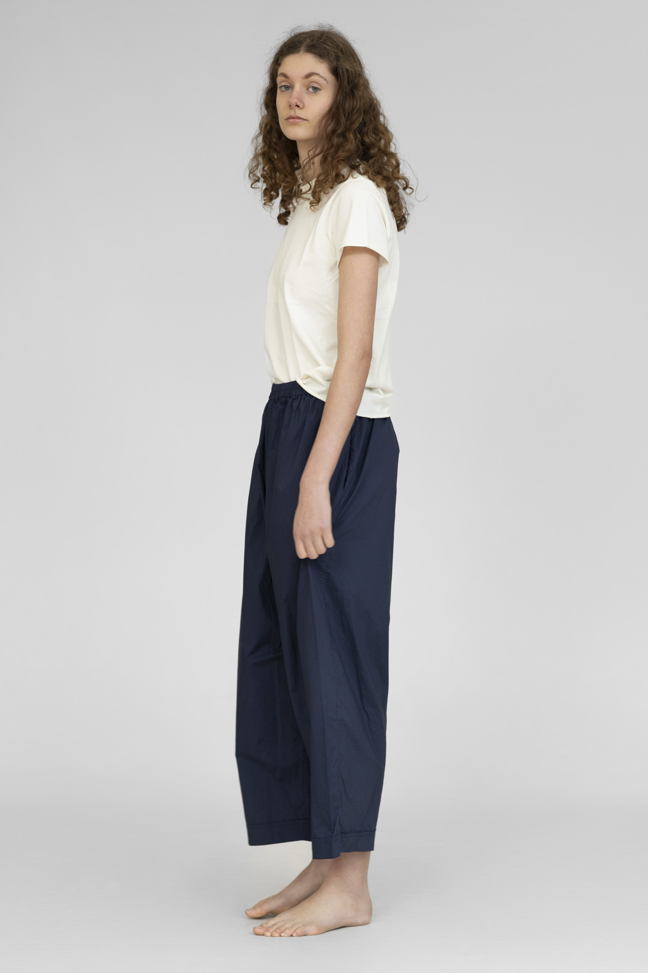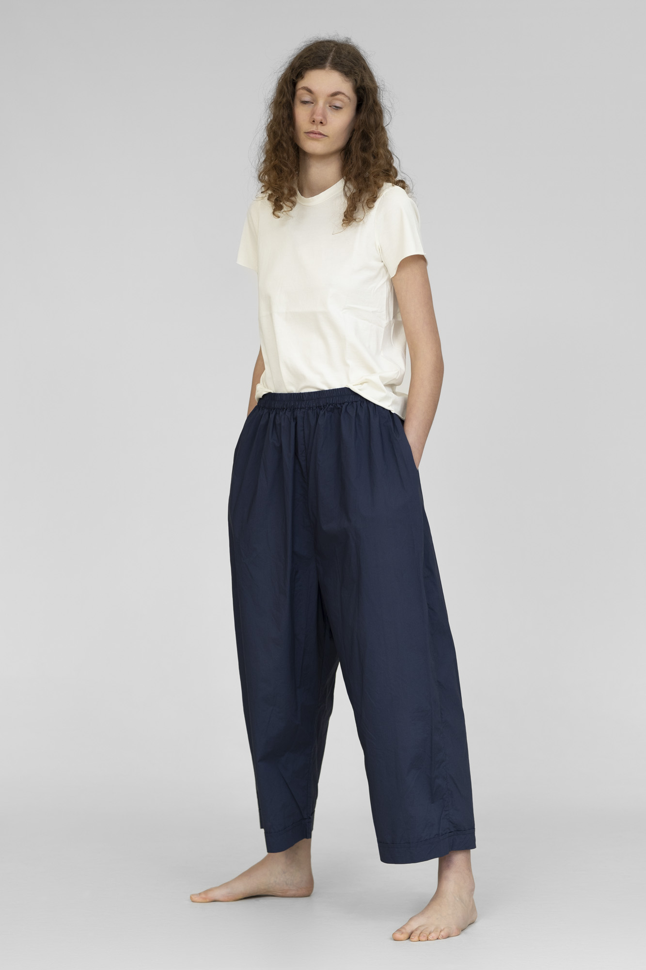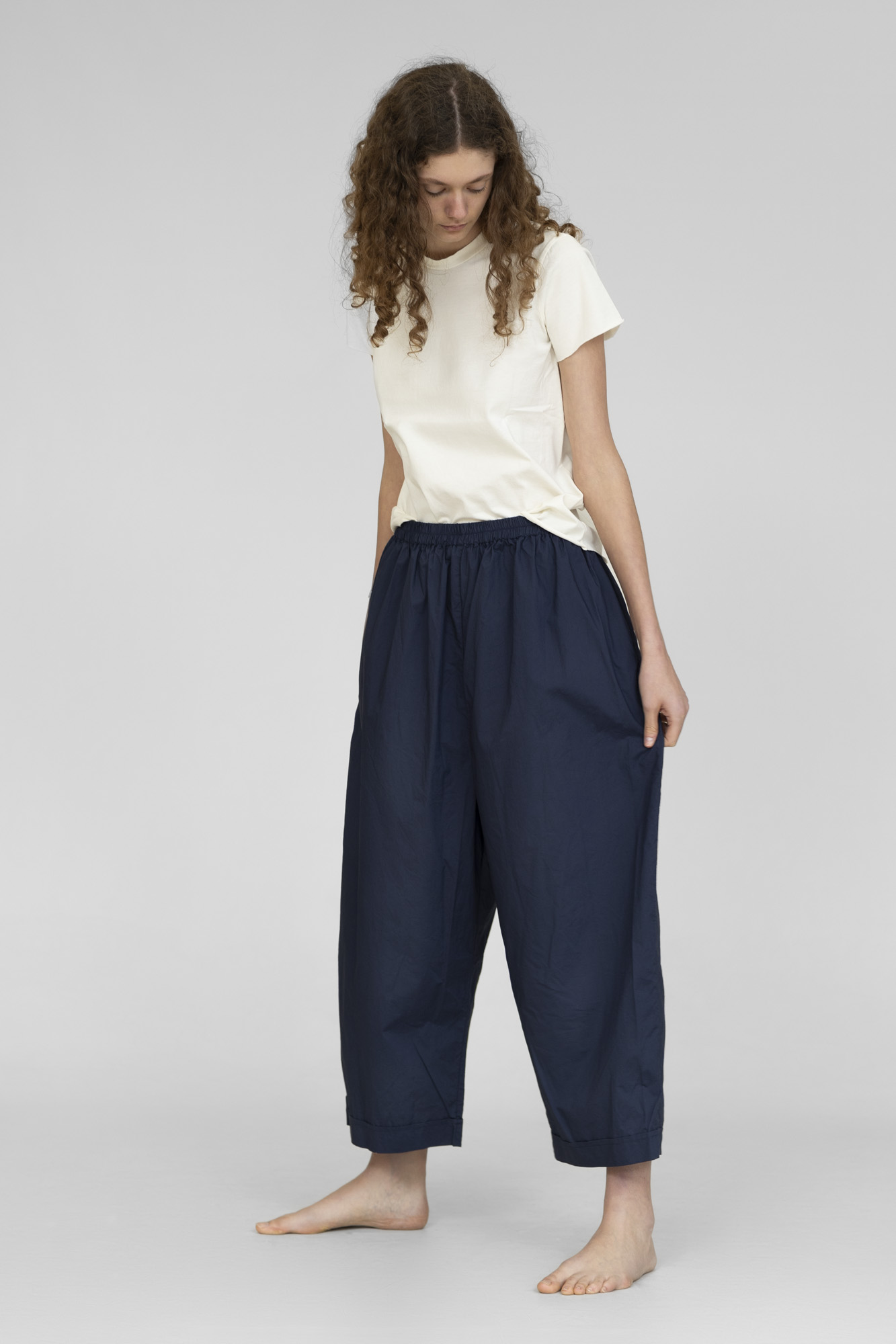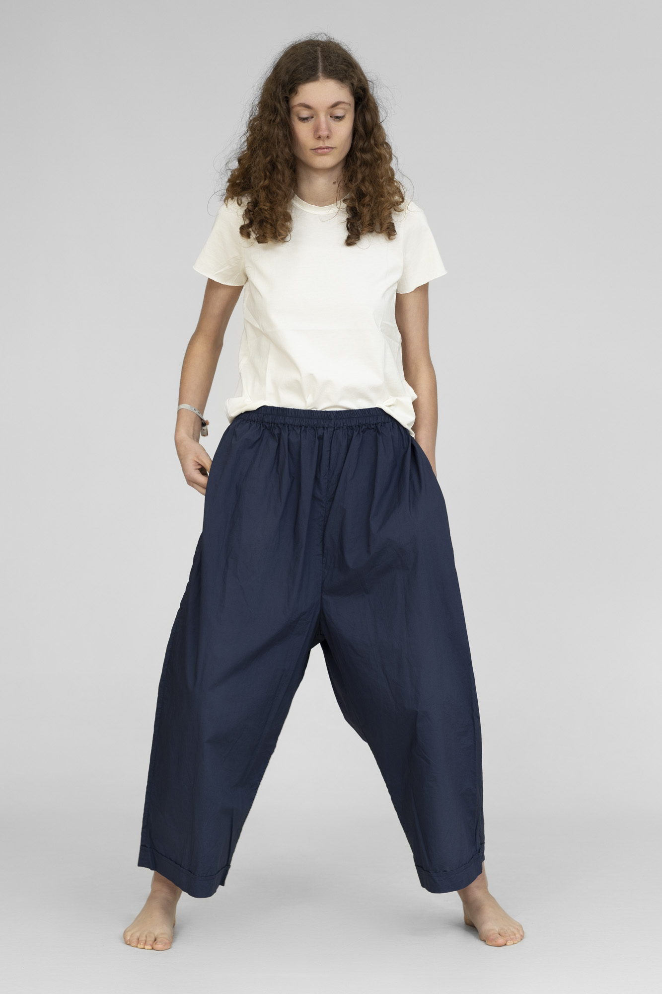 Pantalon Barbara lang, 100% coton lavé, fourche basse, taille élastique, 2 poches côtés. 2 tailles S/M, L/XL.