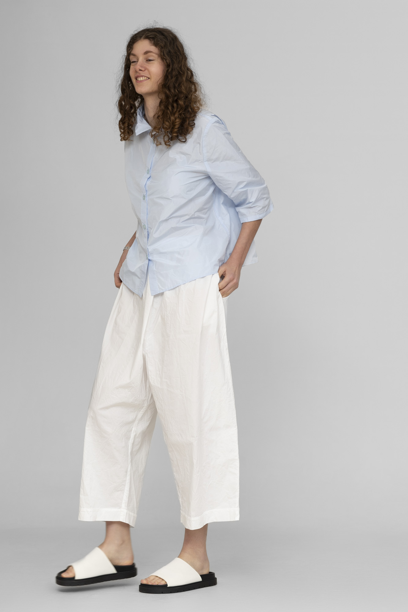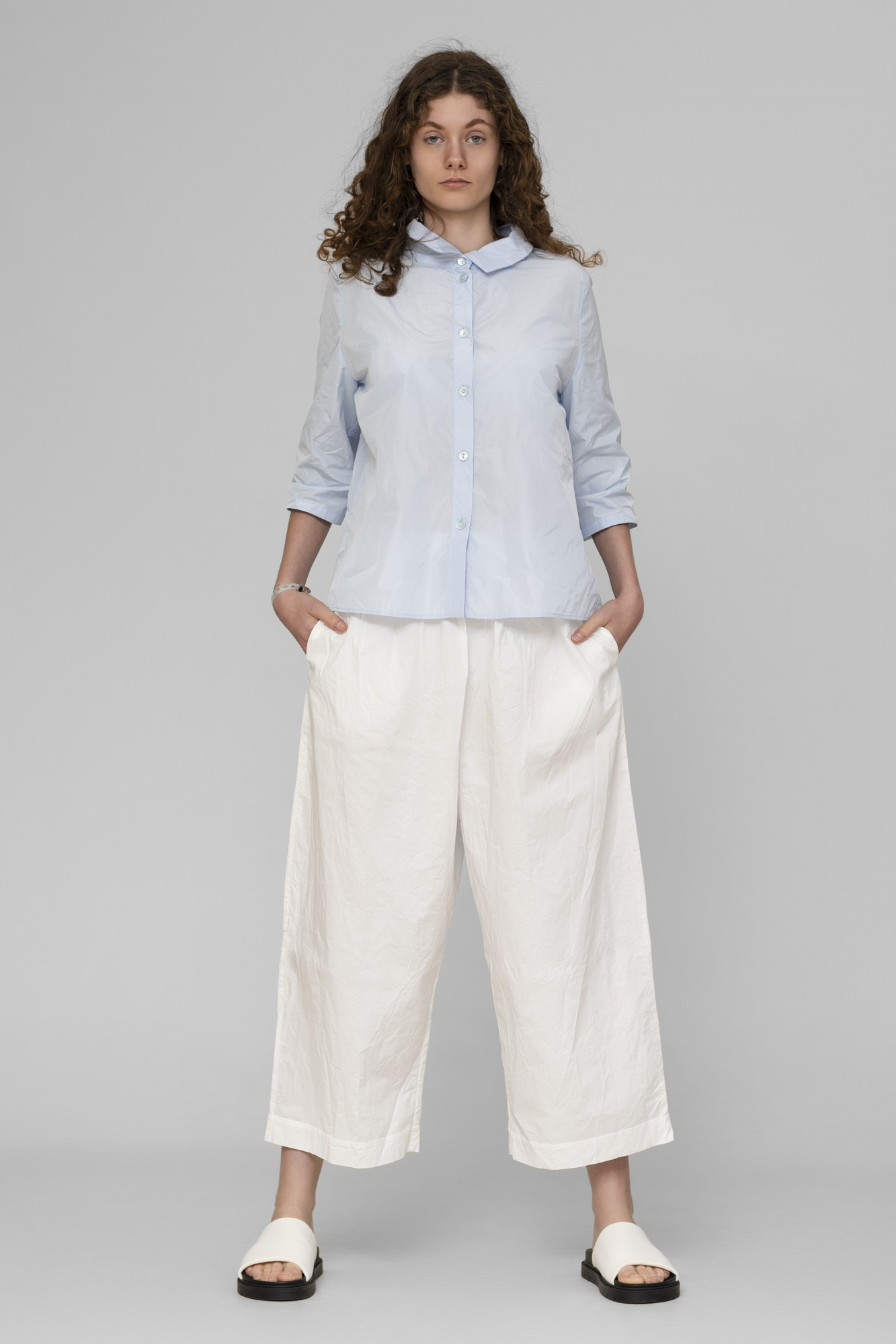 Pantalon Barbara lang, 100% coton lavé, fourche basse, taille élastique, 2 poches côtés. 2 tailles S/M, L/XL.