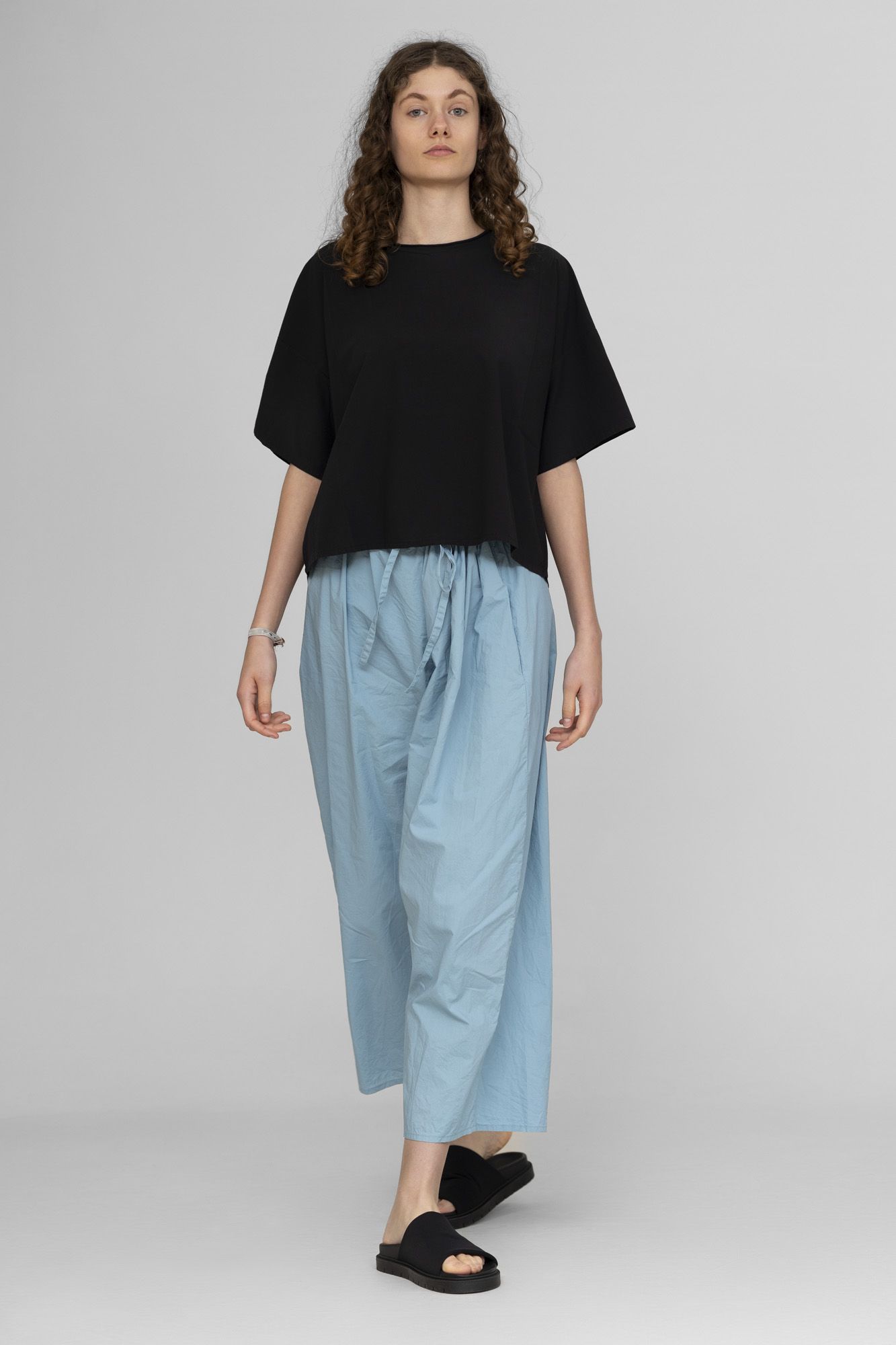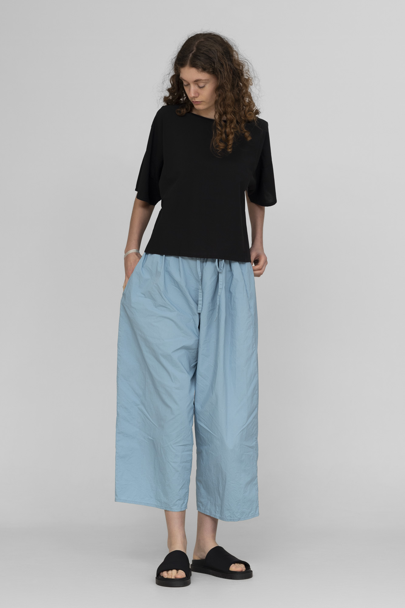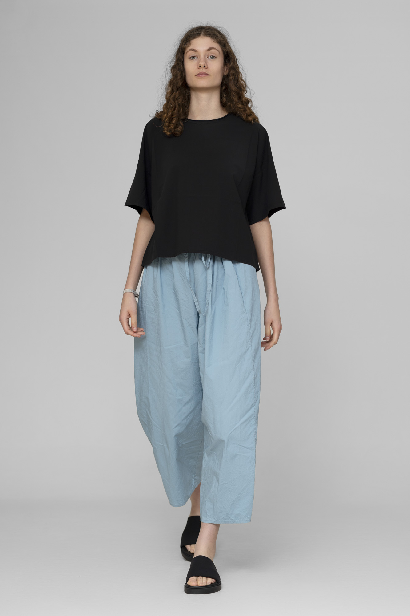 Pantalon Barbara Lang , 100% coton Lavé, taille élastique et lien coulissant , taille unique.